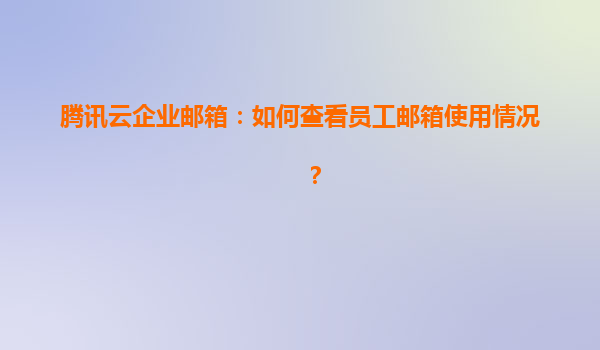 騰訊云企業郵箱:全方位掌握員工郵箱使用情況的管理指南
