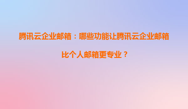 騰訊云企業郵箱通過身份專業化、管理集中化、安全體系化、生態協同化四大維度重構企業通信標準。相比個人郵箱:
