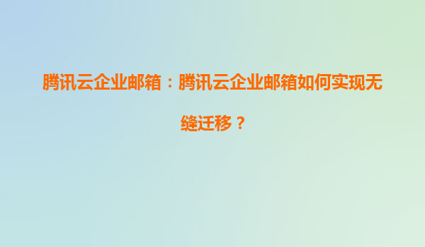 騰訊云企業郵箱無縫遷移指南:高效、安全、無憂