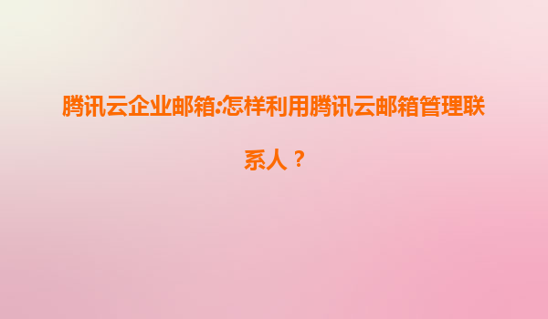 騰訊云企業郵箱:高效聯系人管理解決方案