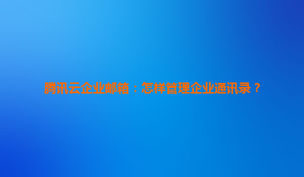 騰訊云企業郵箱:高效管理企業通訊錄的全面指南