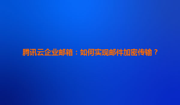 騰訊云企業郵箱:如何實現郵件加密傳輸?