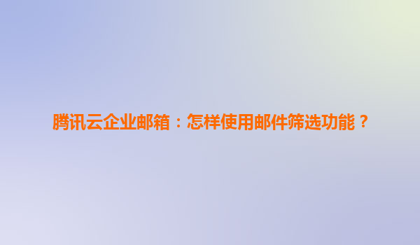 騰訊云企業郵箱:郵件篩選功能使用指南與優勢解析