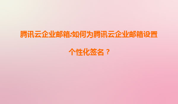 騰訊云企業郵箱:如何設置個性化簽名并發揮平臺優勢