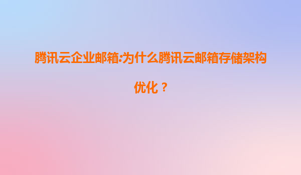 騰訊云企業郵箱:為什么騰訊云郵箱存儲架構優化?