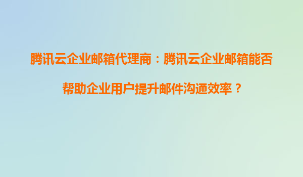 騰訊云企業郵箱代理商:騰訊云企業郵箱能否幫助企業用戶提升郵件溝通效率?