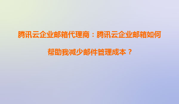 2025-10-05騰訊云企業(yè)郵箱代理商:騰訊云企業(yè)郵箱如何幫助我減少郵件管理成本? 一、企業(yè)郵箱管理的痛點與成本挑戰(zhàn) 在數(shù)字化轉(zhuǎn)型的今天,企業(yè)郵箱作為日常溝通的核心工具,其管理成本往往被低估。傳統(tǒng)自建郵箱服務(wù)器...