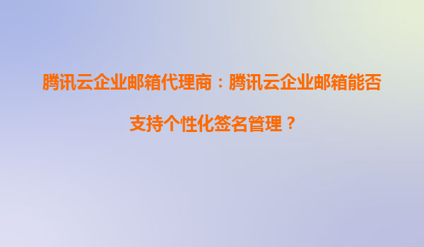 2025-10-05騰訊云企業(yè)郵箱代理商:騰訊云企業(yè)郵箱能否支持個性化簽名管理? 在當(dāng)今數(shù)字化辦公環(huán)境中,企業(yè)郵箱不僅是溝通工具,更是企業(yè)形象的重要載體。作為騰訊云企業(yè)郵箱代理商,我們經(jīng)常被客戶問到一個問題:騰訊云企...