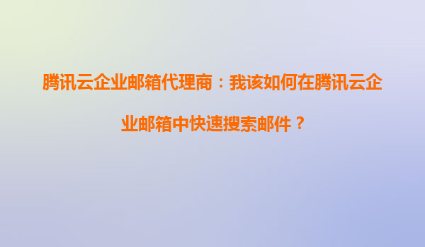 2025-10-03騰訊云企業(yè)郵箱代理商指南:如何高效搜索郵件? 一、騰訊云企業(yè)郵箱的核心搜索功能 騰訊云企業(yè)郵箱提供強大的郵件搜索能力,支持通過關(guān)鍵詞、發(fā)件人、時間范圍...