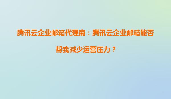 2025-10-01騰訊云企業(yè)郵箱代理商:騰訊云企業(yè)郵箱能否幫我減少運營壓力? 在當(dāng)今快節(jié)奏的商業(yè)環(huán)境中,企業(yè)郵箱不僅是溝通工具,更是企業(yè)形象和效率的體現(xiàn)。騰訊云企業(yè)郵箱作為國內(nèi)領(lǐng)先的企業(yè)郵箱服務(wù)之一,憑借其強(qiáng)大的功...