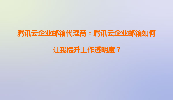 2025-09-30騰訊云企業(yè)郵箱代理商:騰訊云企業(yè)郵箱如何讓我提升工作透明度? 在當(dāng)今快節(jié)奏的商業(yè)環(huán)境中,工作透明度已成為企業(yè)高效運(yùn)營的關(guān)鍵因素之一。騰訊云企業(yè)郵箱作為一款專業(yè)的企業(yè)通信工具,不僅提供了穩(wěn)定可靠的郵...
