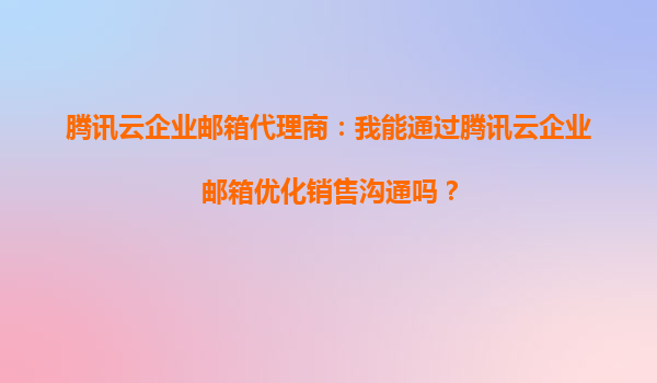 2025-09-30騰訊云企業(yè)郵箱代理商:我能通過騰訊云企業(yè)郵箱優(yōu)化銷售溝通嗎? 在當(dāng)今競爭激烈的商業(yè)環(huán)境中,高效的銷售溝通是企業(yè)成功的關(guān)鍵因素之一。作為騰訊云企業(yè)郵箱的代理商,我們深知企業(yè)郵箱不僅是簡單的郵件收發(fā)工...