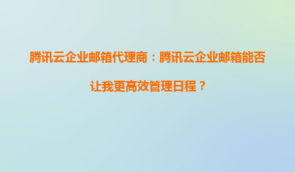 4008-020-360 騰訊云企業(yè)郵箱代理商:騰訊云企業(yè)郵箱能否讓我更高效管理日程? 在當(dāng)今快節(jié)奏的商業(yè)環(huán)境中,高效的時間管理和日程安排是企業(yè)成功的關(guān)鍵因素之一。騰訊云企業(yè)郵箱作為一款專業(yè)的企業(yè)級郵箱解決方案,不僅提供了...
