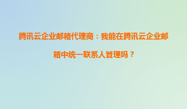 2025-09-25騰訊云企業郵箱代理商:我能在騰訊云企業郵箱中統一聯系人管理嗎? 一、騰訊云企業郵箱的統一聯系人管理功能 作為騰訊云企業郵箱代理商,我們經常收到客戶關于聯系人管理的咨詢。騰訊云企業郵箱確實提供了...