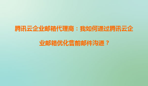 2025-09-25騰訊云企業(yè)郵箱代理商:如何通過騰訊云企業(yè)郵箱優(yōu)化售前郵件溝通 一、騰訊云企業(yè)郵箱的核心優(yōu)勢 騰訊云企業(yè)郵箱作為國內(nèi)領(lǐng)先的企業(yè)級郵箱服務(wù),憑借騰訊強(qiáng)大的技術(shù)實(shí)力和生態(tài)資源,為企業(yè)客戶提供了以下核...