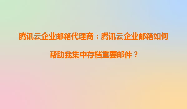 2025-09-23騰訊云企業(yè)郵箱代理商:騰訊云企業(yè)郵箱如何幫助我集中存檔重要郵件? 一、騰訊云企業(yè)郵箱的核心優(yōu)勢(shì) 騰訊云企業(yè)郵箱作為國(guó)內(nèi)領(lǐng)先的企業(yè)通信解決方案,依托騰訊強(qiáng)大的技術(shù)實(shí)力和豐富的生態(tài)資源,為...