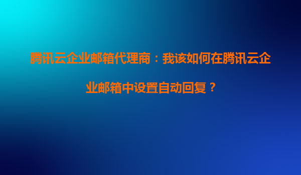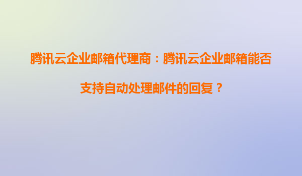 2025-09-20騰訊云企業(yè)郵箱代理商:騰訊云企業(yè)郵箱能否支持自動處理郵件的回復(fù)?...
