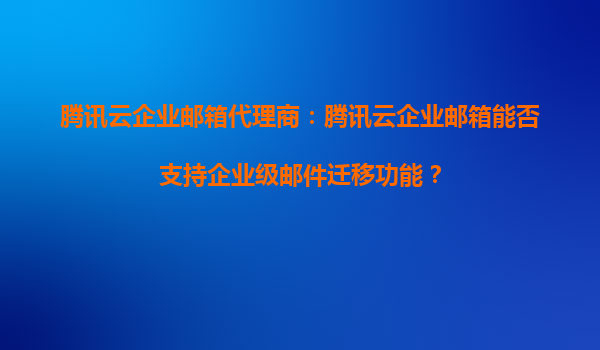 2025-09-19騰訊云企業(yè)郵箱代理商:騰訊云企業(yè)郵箱能否支持企業(yè)級郵件遷移功能? 一、騰訊云企業(yè)郵箱代理商的核心優(yōu)勢 騰訊云企業(yè)郵箱作為國內(nèi)領(lǐng)先的企業(yè)級郵件服務(wù)解決方案,依托騰訊強大的技術(shù)生態(tài)和...