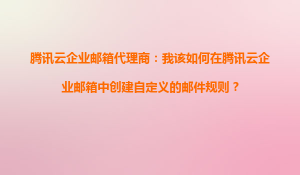 4008-020-360 騰訊云企業(yè)郵箱代理商指南:如何高效創(chuàng)建自定義郵件規(guī)則 一、騰訊云企業(yè)郵箱的獨特優(yōu)勢 作為國內(nèi)領(lǐng)先的云計算服務(wù)商,騰訊云企業(yè)郵箱憑借以下核心優(yōu)勢,成為企業(yè)高效溝通的首選: 極簡管理界面:基于騰訊云控...