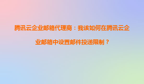 2025-09-17騰訊云企業(yè)郵箱代理商指南:如何設(shè)置郵件投遞限制 1.騰訊云企業(yè)郵箱的核心優(yōu)勢 作為國內(nèi)領(lǐng)先的云計算服務(wù)商,騰訊云企業(yè)郵箱憑借以下優(yōu)勢為代理商提供強(qiáng)大支持: 高可用架構(gòu)-基于騰訊全球數(shù)據(jù)中心部署,99....