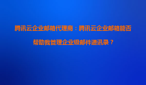 2025-09-18騰訊云企業(yè)郵箱代理商:騰訊云企業(yè)郵箱能否幫助管理企業(yè)級郵件通訊錄? 引言 在現(xiàn)代企業(yè)中,高效的郵件通訊系統(tǒng)是日常運營不可或缺的一部分。尤其是企業(yè)級郵件...