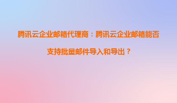 2025-09-16騰訊云企業(yè)郵箱代理服務(wù)解析:批量郵件導(dǎo)入導(dǎo)出功能詳解 一、企業(yè)郵箱數(shù)據(jù)遷移的核心需求 在企業(yè)數(shù)字化運(yùn)營(yíng)過(guò)程中,郵箱系統(tǒng)的數(shù)據(jù)遷移往往是組織架構(gòu)調(diào)整或服務(wù)升級(jí)時(shí)的剛性需求。騰訊云企業(yè)郵箱作為國(guó)內(nèi)領(lǐng)...