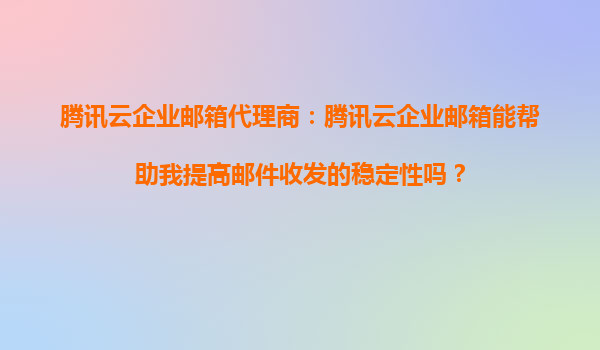 2025-09-16騰訊云企業(yè)郵箱代理商:騰訊云企業(yè)郵箱能幫助我提高郵件收發(fā)的穩(wěn)定性嗎? 企業(yè)郵箱穩(wěn)定性的重要性 在當(dāng)今的商業(yè)環(huán)境中,企業(yè)郵箱不僅是內(nèi)外溝通的橋梁,更是業(yè)務(wù)運(yùn)轉(zhuǎn)的關(guān)鍵工具。無(wú)論是客戶合作、內(nèi)部...