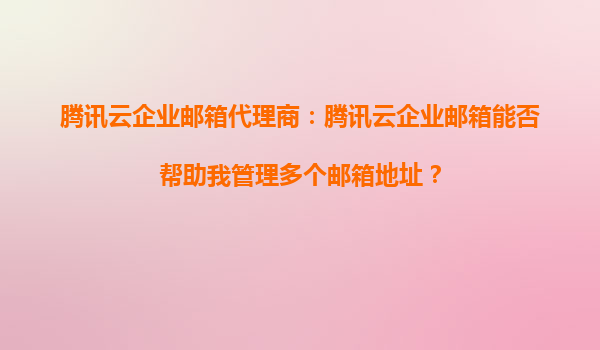 2025-09-16騰訊云企業(yè)郵箱代理商:高效管理多郵箱地址的解決方案 一、多郵箱管理的痛點(diǎn)與需求 在企業(yè)的日常運(yùn)營(yíng)中,往往需要為不同部門或員工分配多個(gè)郵箱地址。若缺乏統(tǒng)...