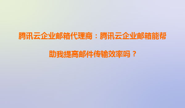 2025-09-16騰訊云企業(yè)郵箱如何提升郵件傳輸效率 在現(xiàn)代商業(yè)環(huán)境中,高效的郵件溝通是企業(yè)運(yùn)營(yíng)的重要一環(huán)。作為騰訊云官方代理商,我們將詳細(xì)介紹騰訊云企業(yè)郵箱如何通過技術(shù)優(yōu)勢(shì)幫助您的企業(yè)顯著提升郵件傳...