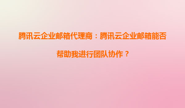 2025-09-16騰訊云企業(yè)郵箱代理商:騰訊云企業(yè)郵箱能否幫助我進(jìn)行團(tuán)隊協(xié)作? 隨著企業(yè)數(shù)字化轉(zhuǎn)型的深入,團(tuán)隊協(xié)作效率成為企業(yè)成功的關(guān)鍵因素之一。騰訊云企業(yè)郵箱作為一款專業(yè)的企業(yè)級郵件服務(wù),不僅提供了穩(wěn)定的郵件收發(fā)...