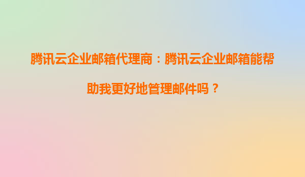 2025-09-16騰訊云企業(yè)郵箱代理商:騰訊云企業(yè)郵箱能幫助我更好地管理郵件嗎? 在當(dāng)今數(shù)字化辦公環(huán)境中,企業(yè)郵箱不僅是溝通工具,更是企業(yè)形象和專業(yè)性的體現(xiàn)。作為騰訊云企業(yè)郵箱代理商,我們深知企業(yè)客戶對高效、安全、...