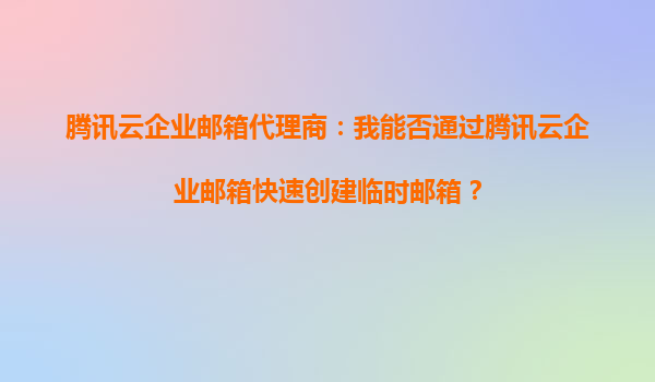 2025-09-16騰訊云企業(yè)郵箱代理商:如何通過騰訊云企業(yè)郵箱快速創(chuàng)建臨時郵箱? 引言 在當今數字化辦公環(huán)境中,企業(yè)郵箱不僅是溝通的重要工具,更是公司形象和效率的體現。騰訊云企業(yè)郵箱憑借其強大的功能和靈活的部署...