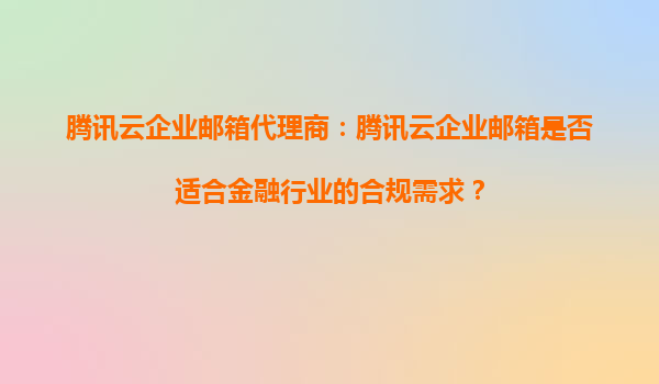 2025-09-16騰訊云企業(yè)郵箱代理商:騰訊云企業(yè)郵箱是否適合金融行業(yè)的合規(guī)需求? 金融行業(yè)的嚴苛合規(guī)要求 金融行業(yè)因其業(yè)務的特殊性和敏感性,對數據安全、隱私保護和信息管控有著極高的要求。各國監(jiān)管...