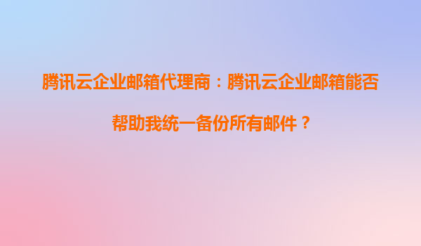 2025-09-16騰訊云企業(yè)郵箱代理商:騰訊云企業(yè)郵箱能否幫助我統(tǒng)一備份所有郵件? 一、騰訊云企業(yè)郵箱的郵件備份能力概述 作為國內領先的企業(yè)級郵箱服務提供商,騰訊云企業(yè)郵箱通過分布式存儲架構和...