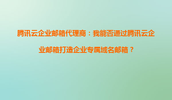 2025-09-16騰訊云企業(yè)郵箱代理商:我能否通過(guò)騰訊云企業(yè)郵箱打造企業(yè)專(zhuān)屬域名郵箱? 在當(dāng)今數(shù)字化商業(yè)環(huán)境中,企業(yè)郵箱不僅是溝通工具,更是企業(yè)專(zhuān)業(yè)形象的體現(xiàn)。擁有一個(gè)以企業(yè)專(zhuān)屬域名為后綴的郵箱(如yourname@your...