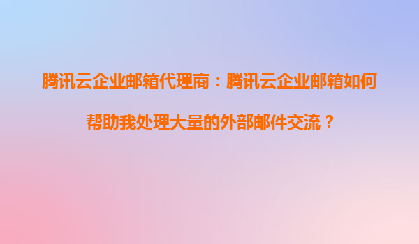 2025-09-16騰訊云企業(yè)郵箱代理商:騰訊云企業(yè)郵箱如何幫助我處理大量的外部郵件交流? 在當(dāng)今快速發(fā)展的商業(yè)環(huán)境中,高效的外部郵件交流是企業(yè)成功的重要保障之一。騰訊云企業(yè)郵箱作為一款專業(yè)的企業(yè)郵箱服務(wù),憑借其強(qiáng)大...