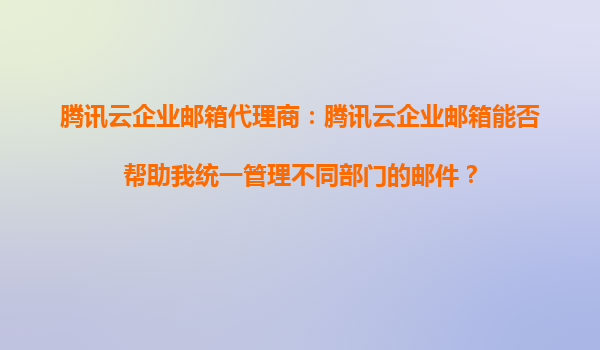 2025-09-16騰訊云企業(yè)郵箱代理商:騰訊云企業(yè)郵箱能否幫助我統(tǒng)一管理不同部門的郵件? 在當(dāng)今快速發(fā)展的商業(yè)環(huán)境中,企業(yè)郵件系統(tǒng)已成為日常溝通不可或缺的一部分。隨著企業(yè)規(guī)模的擴(kuò)大,如何高效管理不同部門的郵件、確保信...