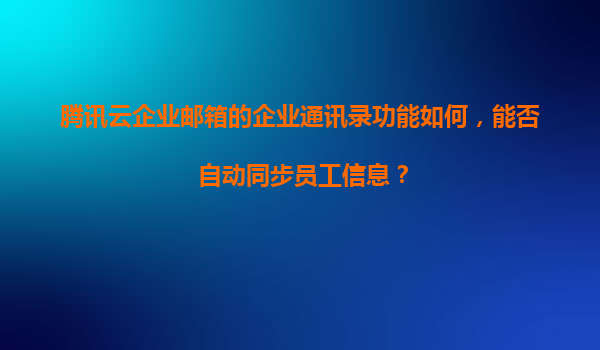 2025-11-19騰訊云企業(yè)郵箱的企業(yè)通訊錄功能解析:高效管理與自動(dòng)同步 一、騰訊云企業(yè)郵箱通訊錄功能概述 騰訊云企業(yè)郵箱作為國(guó)內(nèi)領(lǐng)先的企業(yè)級(jí)郵箱服務(wù),其內(nèi)置的企業(yè)通訊錄功能為企業(yè)提供了高效的組織架...