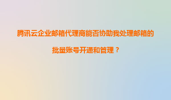 2025-11-19騰訊云企業(yè)郵箱代理商如何協(xié)助企業(yè)高效處理批量賬號(hào)開(kāi)通與管理? 一、騰訊云企業(yè)郵箱的核心優(yōu)勢(shì) 騰訊云企業(yè)郵箱作為國(guó)內(nèi)領(lǐng)先的SaaS郵箱服務(wù),具備以下核心優(yōu)勢(shì): 高可靠性-基于騰訊分布式架構(gòu),提供99.9%服務(wù)可...