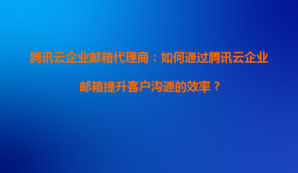 2025-09-16引言:騰訊云企業(yè)郵箱帶來的高效郵件管理 在當今數(shù)字化辦公環(huán)境中,企業(yè)郵箱不僅是溝通的重要工具,更是業(yè)務高效運轉的關鍵一環(huán)。騰訊云企業(yè)郵箱憑借穩(wěn)定的基礎設施和智能功能,成為眾多企業(yè)的首選。作為代理商,如...