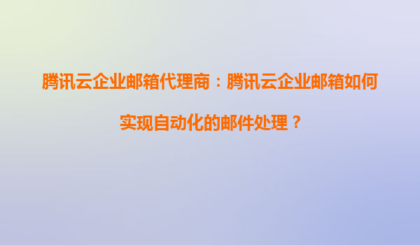2025-09-16騰訊云企業(yè)郵箱代理服務中的自動化郵件處理 什么是騰訊云企業(yè)郵箱自動化處理? 騰訊云企業(yè)郵箱通過智能化技術提供自動化郵件處理功能,幫助企業(yè)高效管理郵件收發(fā)、分類、歸檔和響應。依托騰訊云的底層...