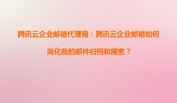 2025-09-16騰訊云企業(yè)郵箱代理商:騰訊云企業(yè)郵箱如何簡(jiǎn)化我的郵件歸檔和搜索? 一、企業(yè)郵件管理的痛點(diǎn) 在數(shù)字化辦公時(shí)代,電子郵件是企業(yè)內(nèi)外溝通的重要工具。然而,隨...