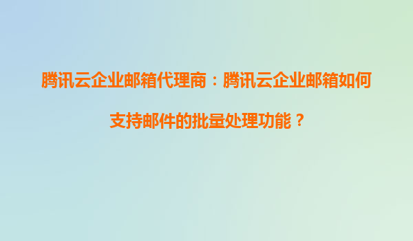 2025-09-05騰訊云企業(yè)郵箱代理商:騰訊云企業(yè)郵箱如何支持郵件的批量處理功能? 在現(xiàn)代企業(yè)管理中,郵件溝通是日常工作的重要組成部分。高效處理大量的企業(yè)郵件不僅能提升工作效率,還能降低管理成本。騰訊云企業(yè)郵箱作為國內(nèi)...