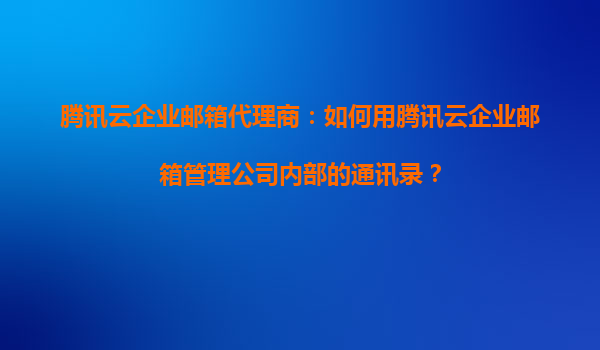 2025-09-03騰訊云企業郵箱代理商:如何用騰訊云企業郵箱管理公司內部的通訊錄? 一、騰訊云企業郵箱簡介 騰訊云企業郵箱是一款基于云計算技術的高效、安全的企業郵件服務,專為企...