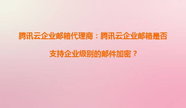 2025-09-02騰訊云企業郵箱支持企業級郵件加密 隨著企業數字化轉型的加速,信息安全問題越來越受到重視。騰訊云企業郵箱作為企業級郵件服務提供商,全面支持企業級的郵件加密功能。通過SSL/TLS加密、S/MIME證書等多種技術手段...