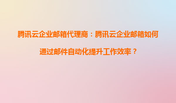 2025-08-30騰訊云企業(yè)郵箱代理商:騰訊云企業(yè)郵箱如何通過郵件自動化提升工作效率? 一、企業(yè)郵箱自動化的核心價值 在數字化辦公場景中,郵件自動化已成為企業(yè)提升溝通效率的關鍵工具。騰訊云企業(yè)...