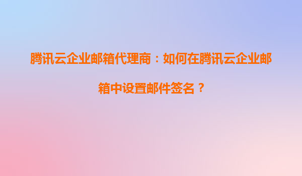 騰訊云企業郵箱代理商:如何在騰訊云企業郵箱中設置郵件簽名? 在當今數字化辦公環境中,企業郵箱已成為商務溝通的重要工具。作為騰訊云企業郵箱代理商,我們深知郵件簽名不僅代表企業形象,還能提升專業度和...