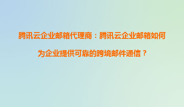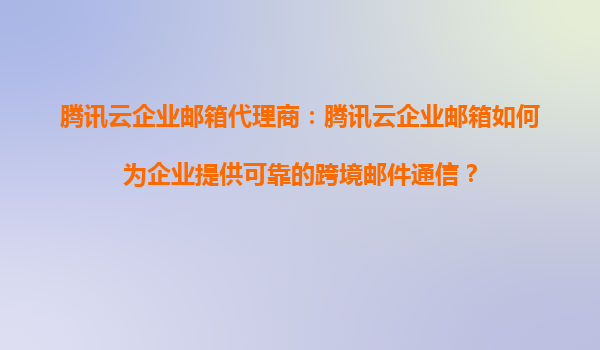 騰訊云企業郵箱代理商:騰訊云企業郵箱如何為企業提供可靠的跨境郵件通信? 在全球化商業環境中,跨境郵件通信已成為企業日常運營的重要組成部分。然而,由于網絡環境、語言障礙、法律法規等因素,跨境郵件通信...