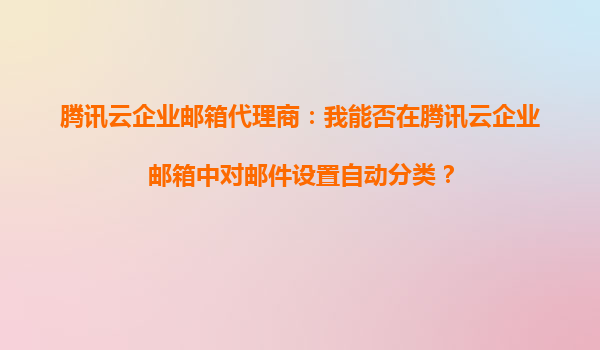 2025-08-24騰訊云企業郵箱代理商:我能否在騰訊云企業郵箱中對郵件設置自動分類? 在當今快節奏的商業環境中,高效管理電子郵件已成為企業運營的重要組成部分。騰訊云企業郵箱作為一款專業的企業級郵箱服務,不僅提供了穩...