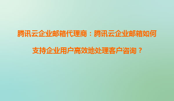 騰訊云企業郵箱代理商:騰訊云企業郵箱如何支持企業用戶高效地處理客戶咨詢? 在當今快節奏的商業環境中,企業客戶咨詢的高效處理直接關系到客戶滿意度和業務增長。騰訊云企業郵箱作為一款專業的企業級郵箱服務...